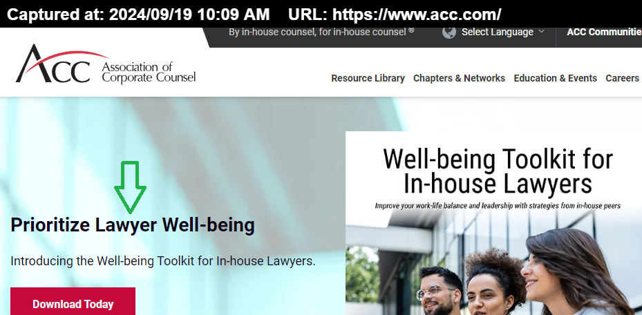 La posizione non è IRONICA (Dare Priorita al benessere degli avvocati:) ma era proprio l'homepage di ACC e cioe' il Network delle Litigation:)