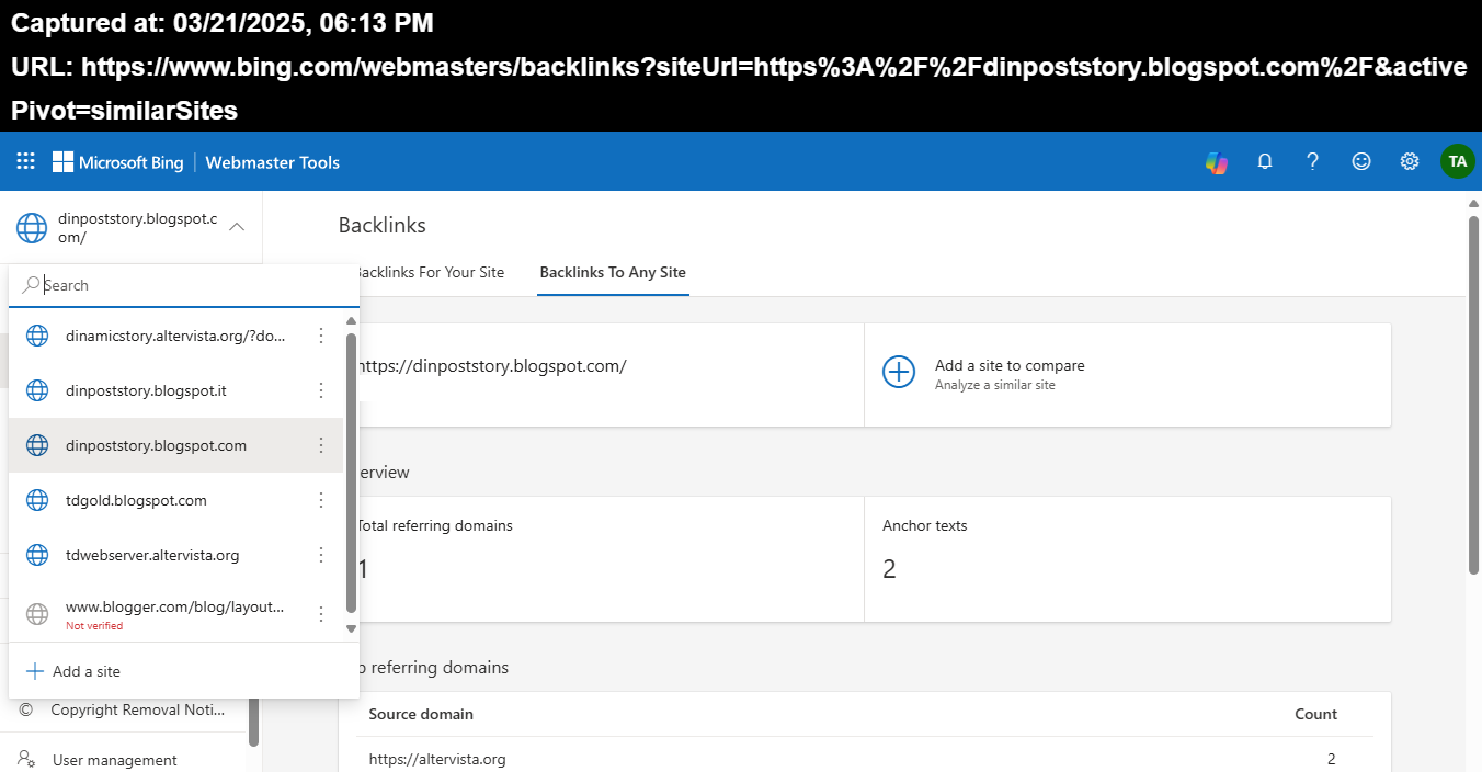 Any Site ha come riferimento tutto il web e sono comprese anche le tante Sister Site non presenti nelle Proprieta oltre a tutti gli altri Account uniti a quello generale dell'Holy Grail TFD Google:) (ne sono 27 e tra di essi esiste anche quello di Moz e Wikimedia:)