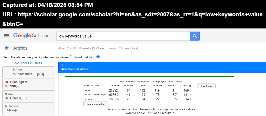 Anche queste posizioni fanno parte del Divertimento (è il vero Highest:) nei confronti degli operatori SEV;delle Data Priority e anche di DOJ:)Sono le Citations,pero' su Google Scholar e il contesto è molto diverso dalle banalita' degli operatori alternativi ai Dati Veri,perche' le Citations specifiche nascono da Content Validi e occorre ricordare che quasi tutte le presenze di Google Scholar sono a loro volta anche della Main Entity e quindi i Match sono davvero proibitivi:)Gli autori dell'Holy Grail TFD Google Scholar sono fantastici e occorre ricordare che le Citazioni sistemate sopra,fanno parte solo della prima pagina e il numero complessivo è molto elevato,ed è realizzato da Main Entity prevalentemente,pero' nonostante questa posizione,i Match non li hanno vinti loro:)Naturalmente il contesto straordinario non sono i termini specifici,anche se hanno un Alta Rilevanza ,ma le Proposte Complessive che li contengono sono i veri festeggiati e sono loro a formare le Demo Data e cioe' le tante combinazioni che possono avere i termini e se hanno resitito ai contenuti di questo dominio,qualsiasi altro Match non procura nessun timore ,anche rispetto alle Main Entity di Google Scholar:)Altre posizioni saranno nella prossima pubblicazione di FGL JUN 2025 e saranno protagoniste alcune presenze delle Data Priority,ed entrambe per diverse ragioni saranno unite a Wikimedia e cioe' il capo dei SEV:) Sarebbero tante le cose ancora da sistemare,pero' la pubblicazione ha gia' dimensioni notevoli e quindi inserisco solo il nuovo sistema dedicato ai SEV e agli elementi delle Data Priority e l'insieme non sara' solo in questa pubblicazione,perche' lo avra' anche la nuova pagina dell'Avoid Concern Trust e il collegamento lo avra' sempre il banner attuale (è quello in fondo a sinistra) e la funzione sara quella originale dell'Avoid Concern Trust,ed è quella del Divertimento:)