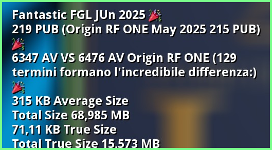Per FGL MAY 2025 sono state selezionate 36 pubblicazioni ,pero' i Match sono arrivati a 175 e il totale fino all'anno 2021 è di 709 Match VS 614 di questo FGL JUN 2025:)